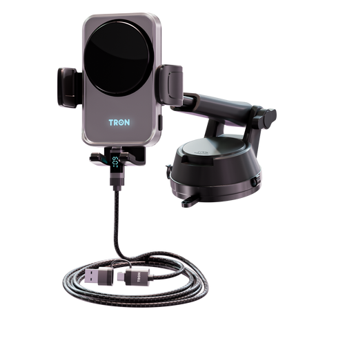 15W Fan Cooling Wireless Car Charger Mount — Auto-Clamp + Dashboard Suction Cup + 360° Rotation